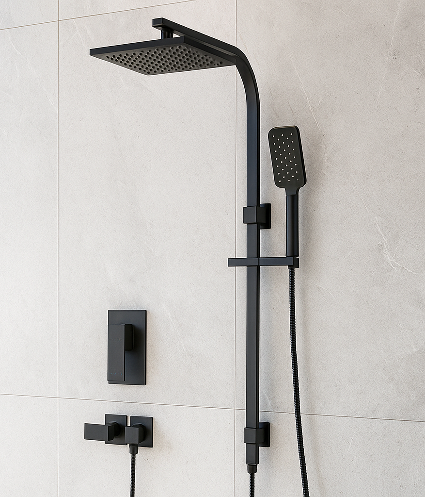 Decaura Square Shower Head Set Black/Chrome Separate Water Inlet Wall Tapware
