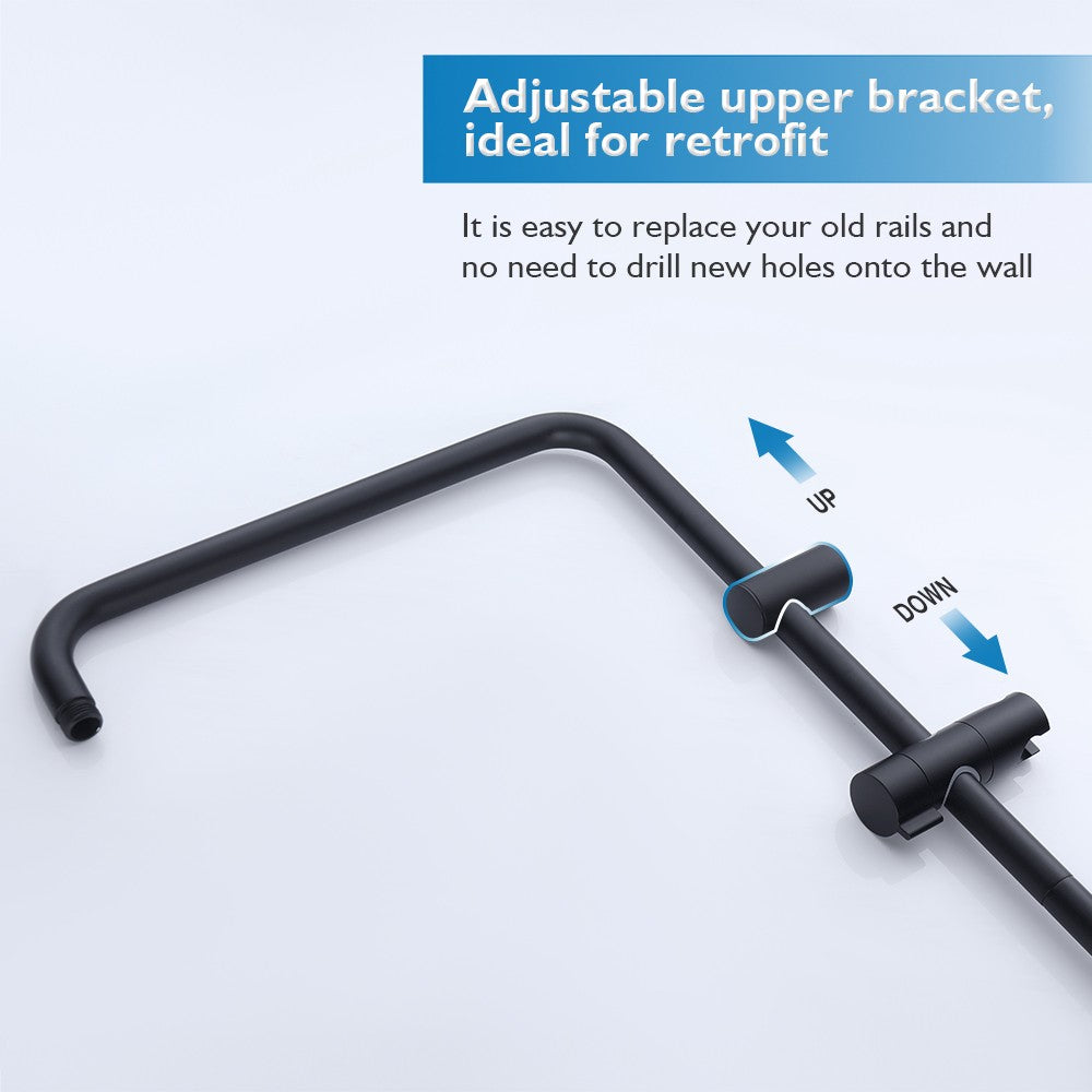 Main Fetures: (1) Separated water inlet, which offers easy plumbing or fast bathroom facelift without the need to remove the tiles and re-plumbing. (2) With the height adjustable design, the hand shower and overhead shower can be adjusted to the desired height. (3) Adjustable bracket distance ideal for retrofit, easy to replace your old rails without drilling new holes on wall.(Distance between 620mm~980mm) (4) 3-Mode Handheld shower head: 3 functions(Rainfall/Bubble/Mix) ABS plastic handheld shower, come with 2 shower hoses(120cm x 1,150cm x 1) (5) Easy installation: Come with everything you need in one Decaura customized proper packaging box, easy to install, 100% tested before shipment