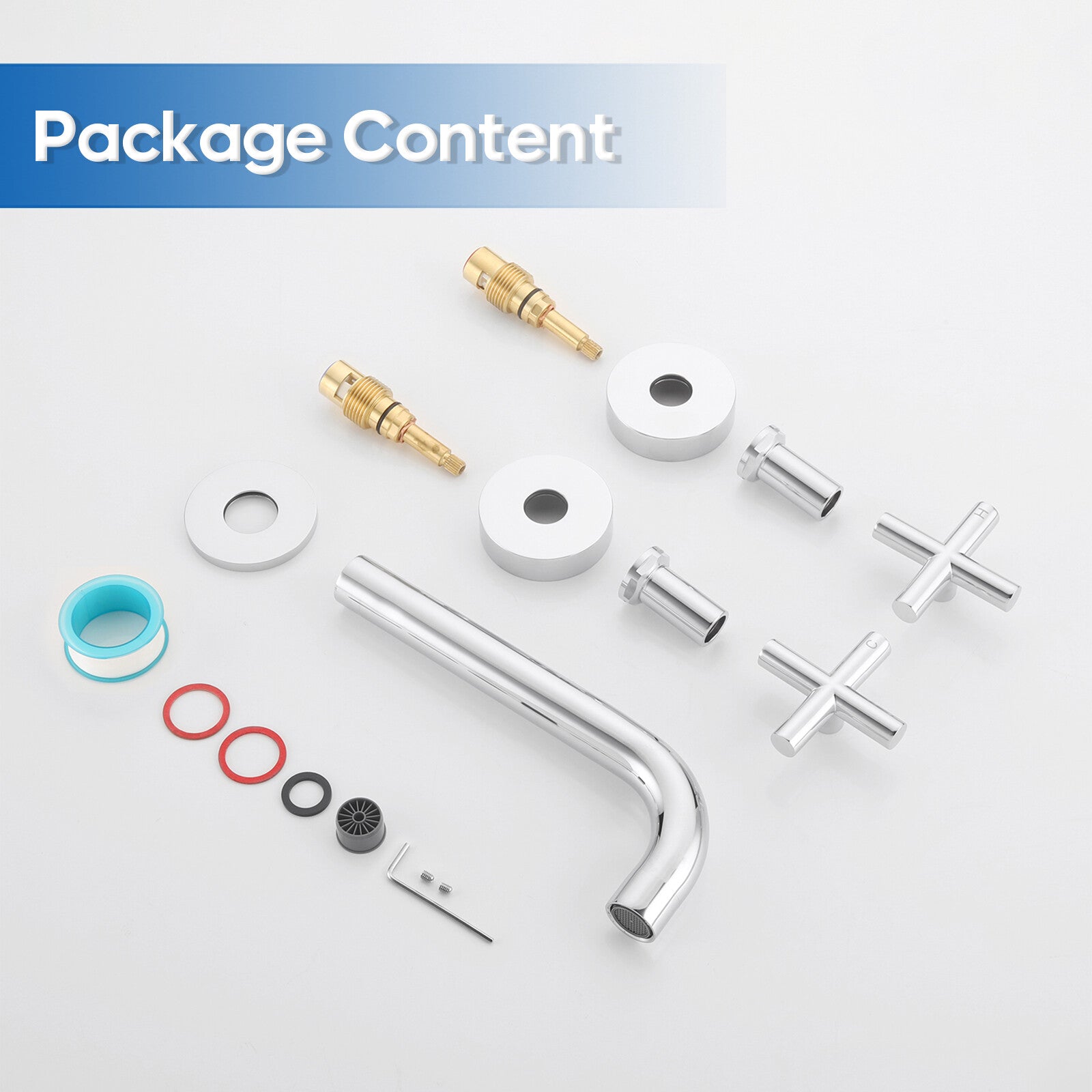 Package Contents: 1* Basin Spout 1x Shower Taps for hot and cold water And installation accessories