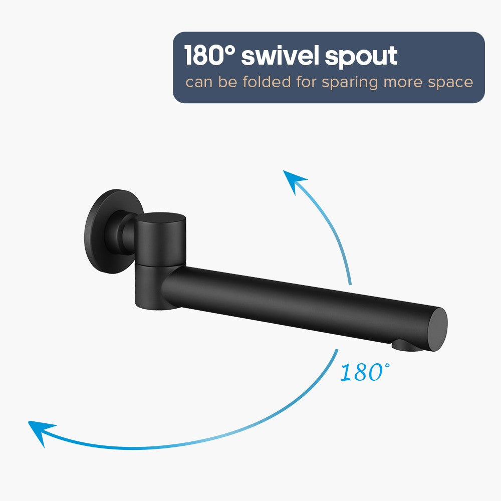 Black Bath Spout Description: > 180° swivel to meet your demand of any positions and to save the space of your bathroom > Aerator provides a non- splashing stream,soft to touch. > Extensive use in bathtub / vanity, also could be mounted as wall basin mixer taps > Easy installation, just remove old taps or spout and fit straight in. No additional major plumbing work needed