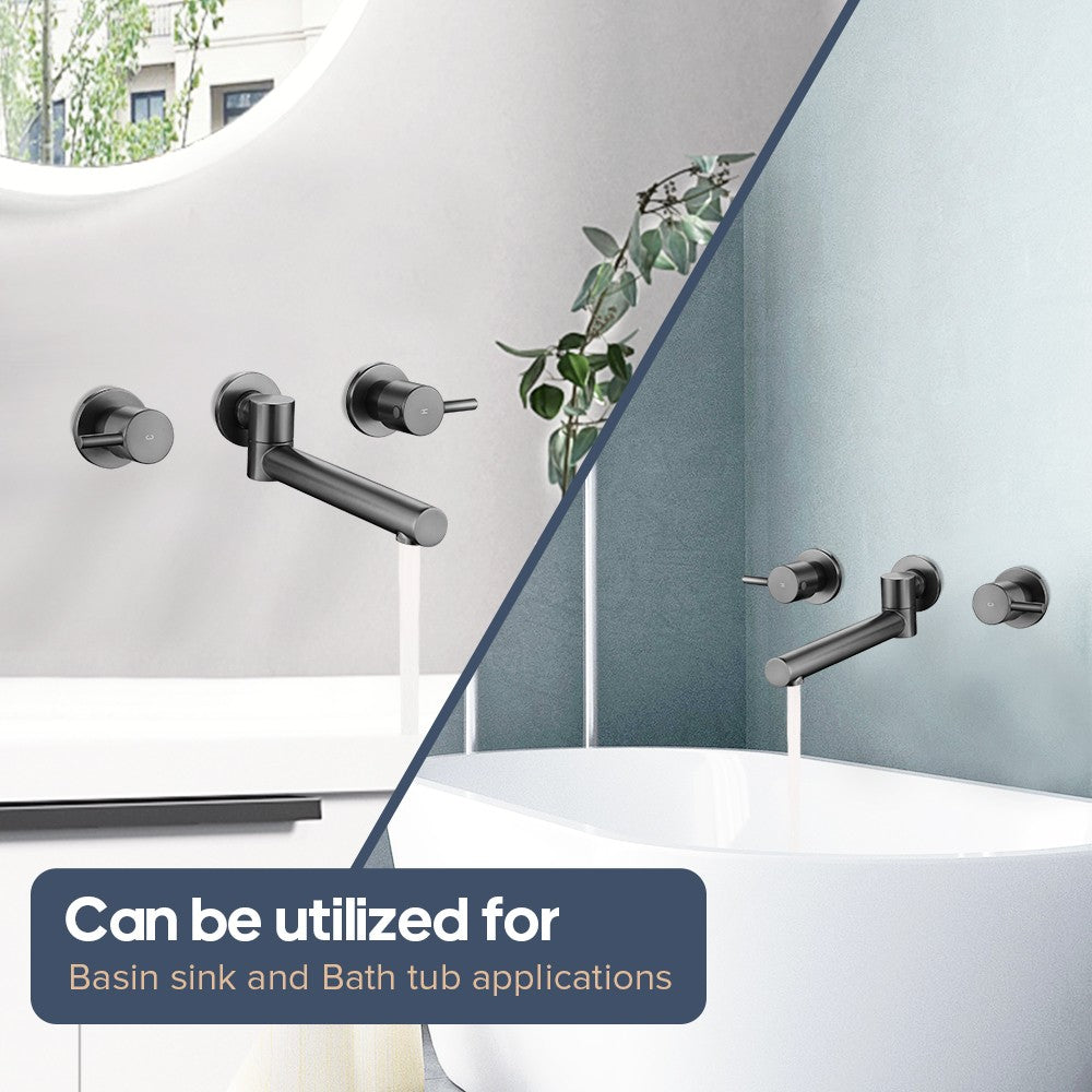 Bath Spout: Crafted from brass, our bath spout offers dual functionality. One nozzle, for the washbasin, gives a gentle water flow. The other, for the bathtub, ensures rapid filling. Moreover, it can rotate 180°, allowing you to easily direct the water. Durable and versatile, it's a great choice for your bathroom.
