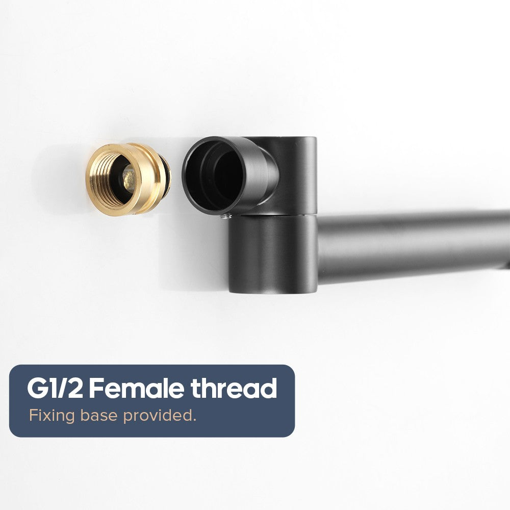 Features: > Material: Durable Solid-brass Construction > Finish: Chrome/Black/Brushed Gunmetal/Brushed Gold > G 1/2 female thread: fixing base provided > Watermark Certified > No wels needed for bath spout