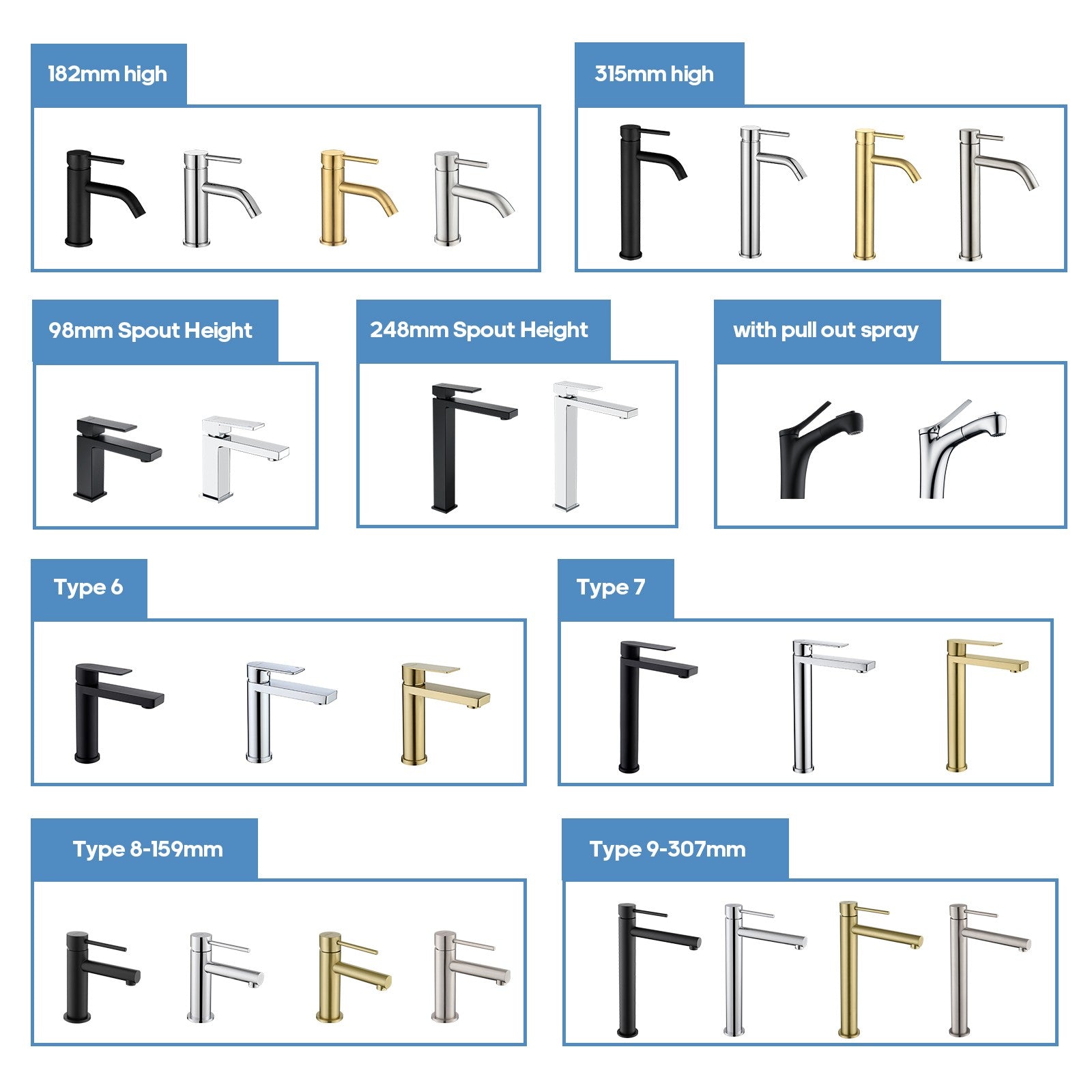 Item Type: 294mm high in chrome/matte black/brushed gold
