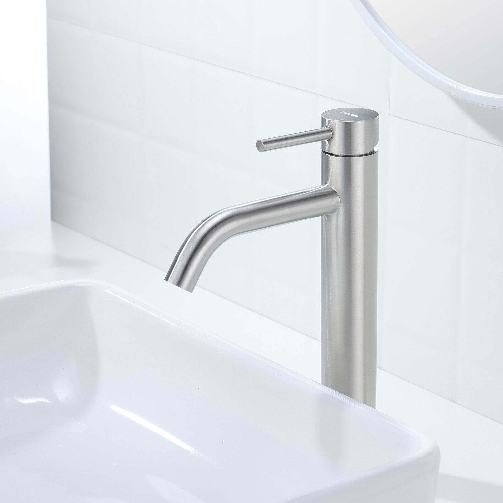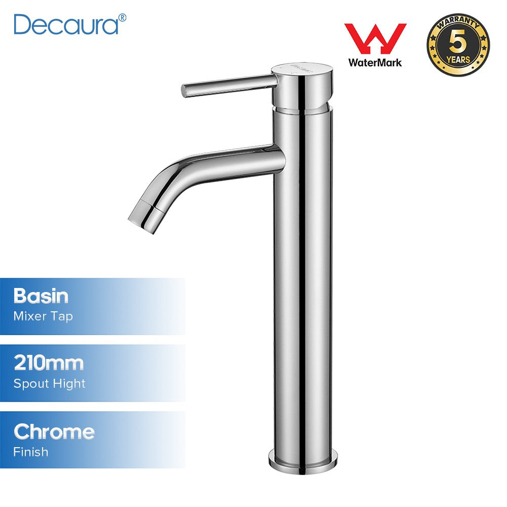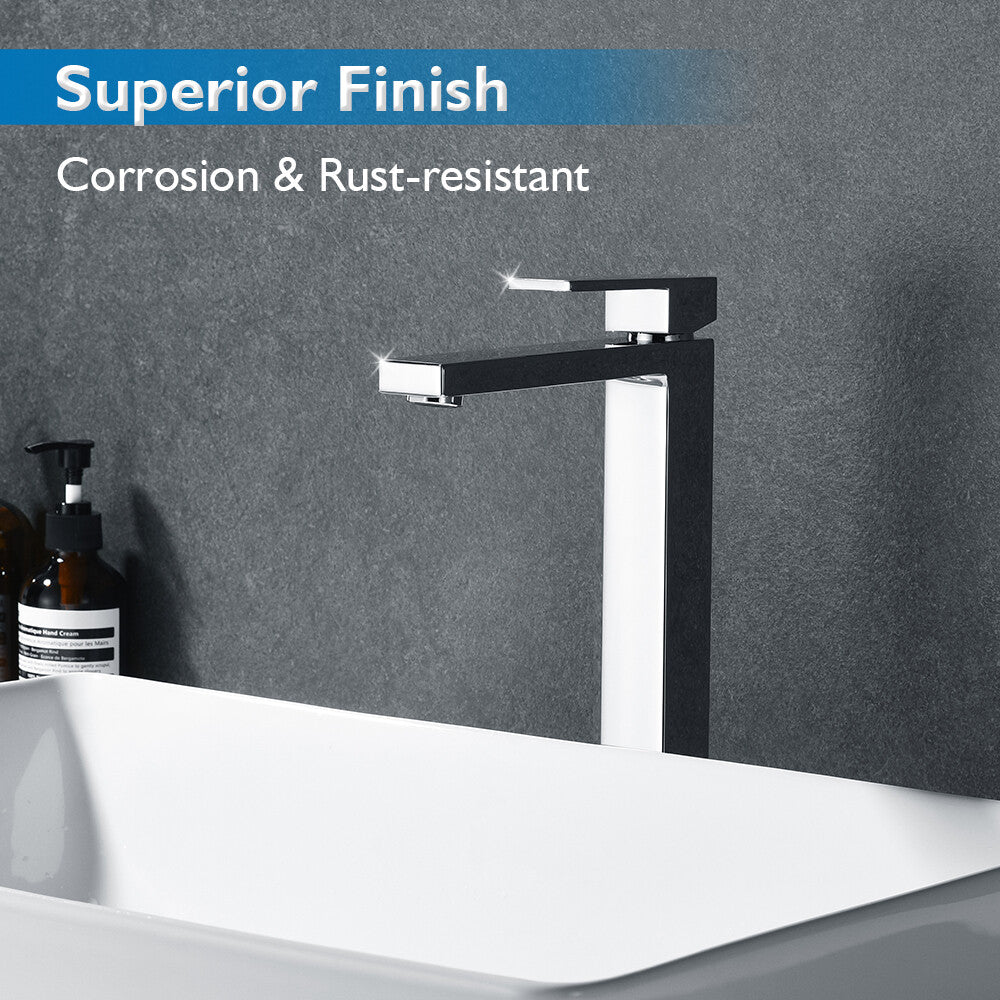 Type 9-307mm WELS star rating: 4 Sturdy Stainless Steel Build: The Tall bathroom mixer tap body is crafted from stainless steel, ensuring exceptional durability and long-lasting performance.Gentle, Splash-Free Flow: Delivers a soft steady water flow to prevent splashing, maintaining a neat basin area. Ideal for Above-Counter Basins: This basin tap is perfectly suited for installation alongside above-counter basins, with a total height of 307mm and a spout-to-counter distance of 237.5mm. Package Content: