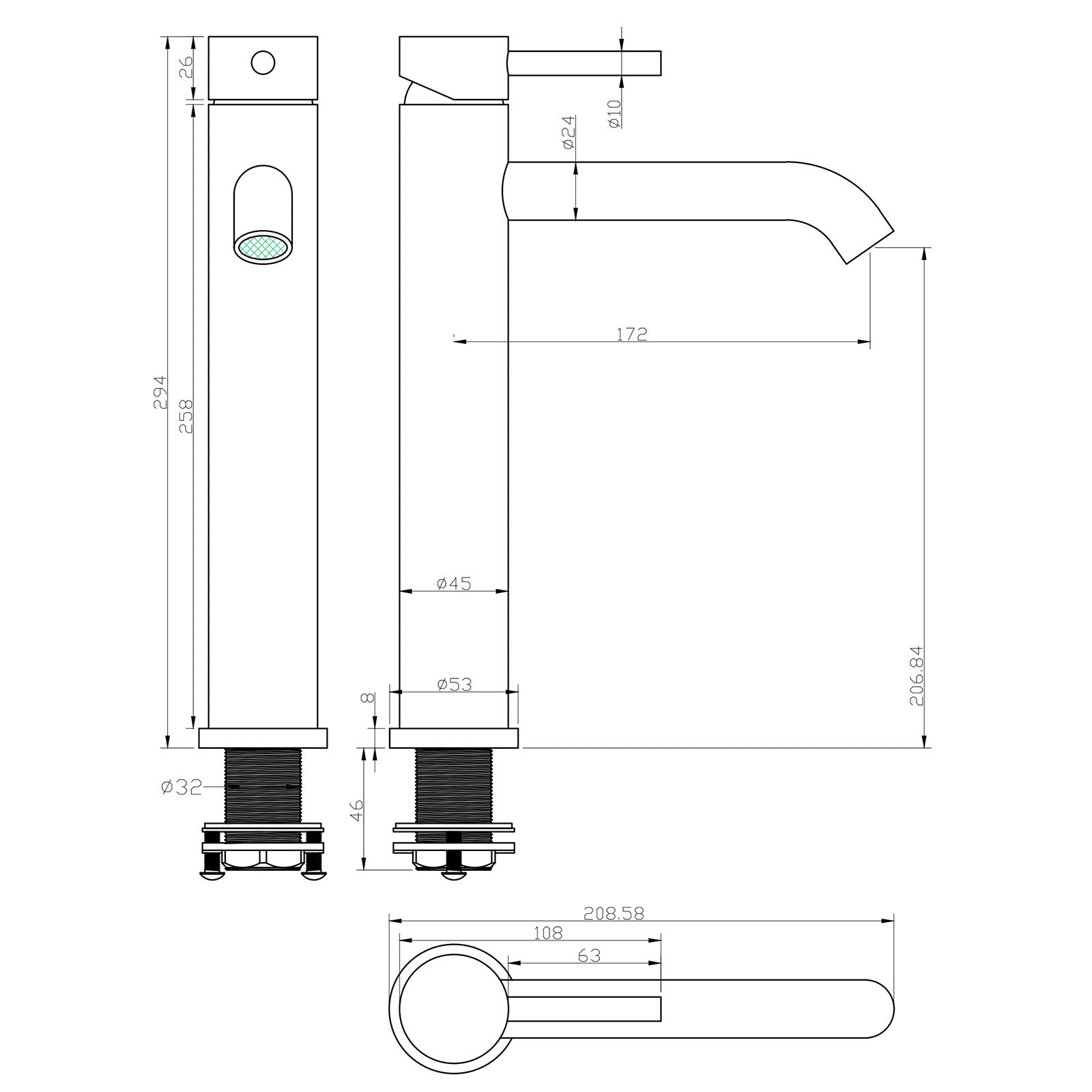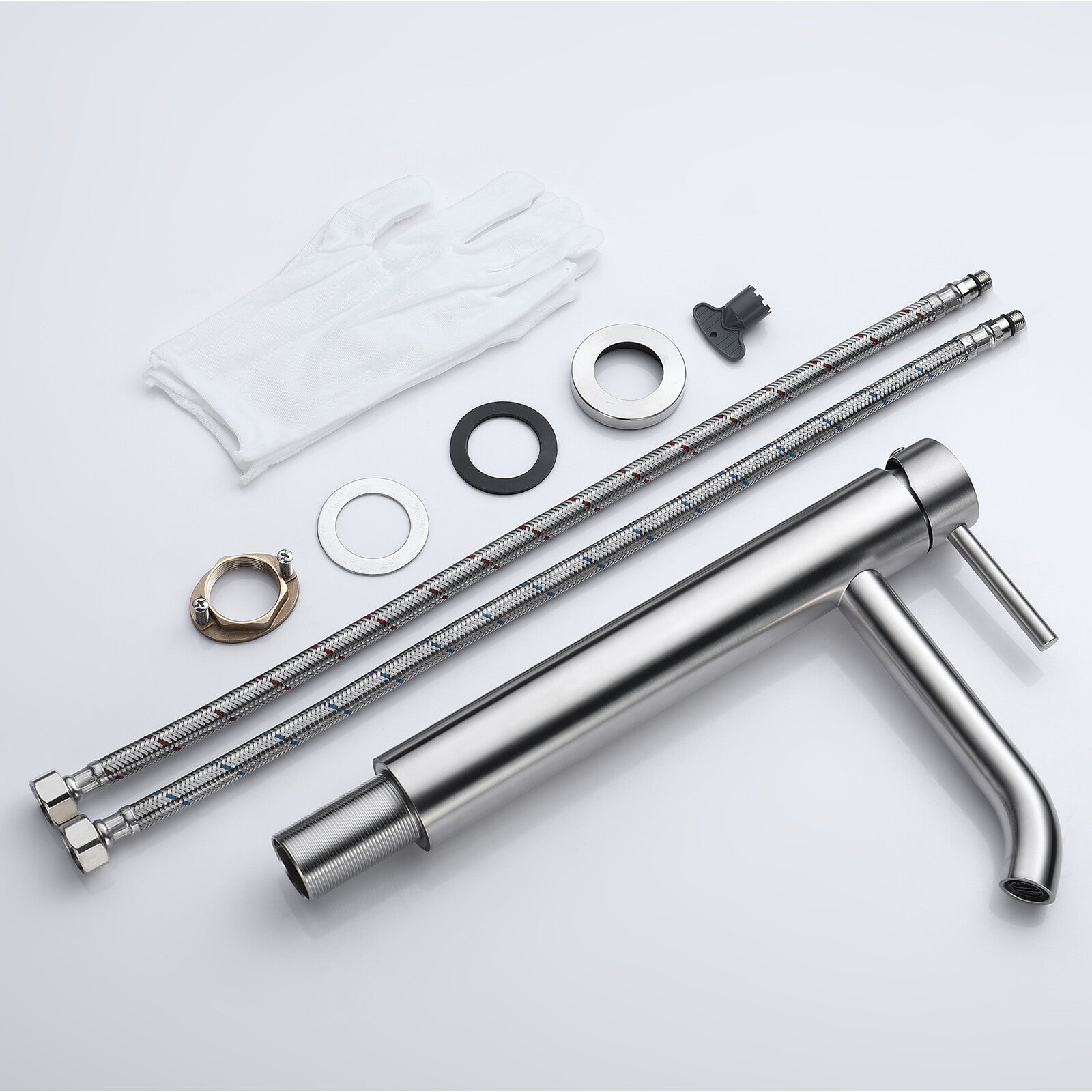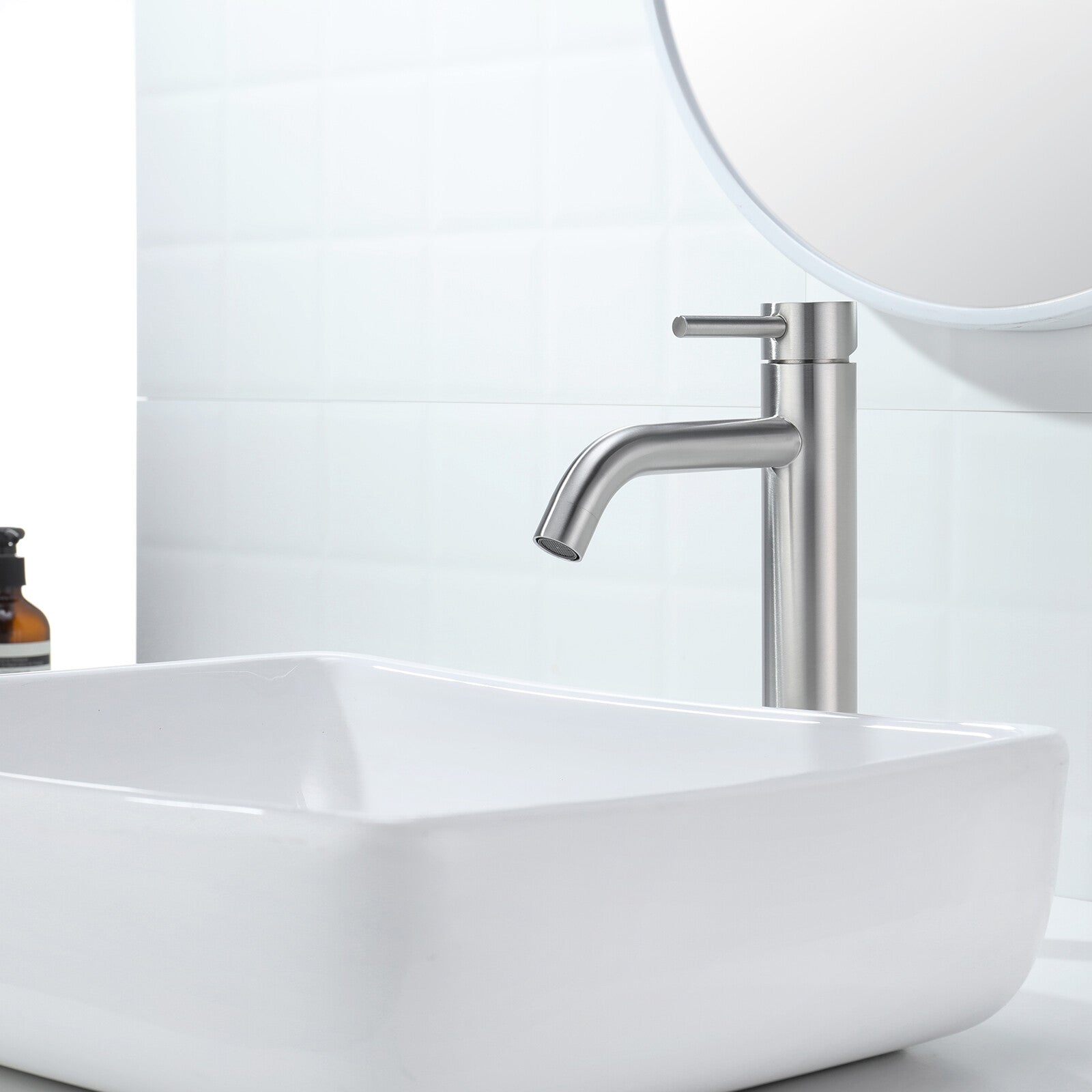 Type 9-307mm WELS star rating: 4 Sturdy Stainless Steel Build: The Tall bathroom mixer tap body is crafted from stainless steel, ensuring exceptional durability and long-lasting performance.Gentle, Splash-Free Flow: Delivers a soft steady water flow to prevent splashing, maintaining a neat basin area. Ideal for Above-Counter Basins: This basin tap is perfectly suited for installation alongside above-counter basins, with a total height of 307mm and a spout-to-counter distance of 237.5mm. Package Content: