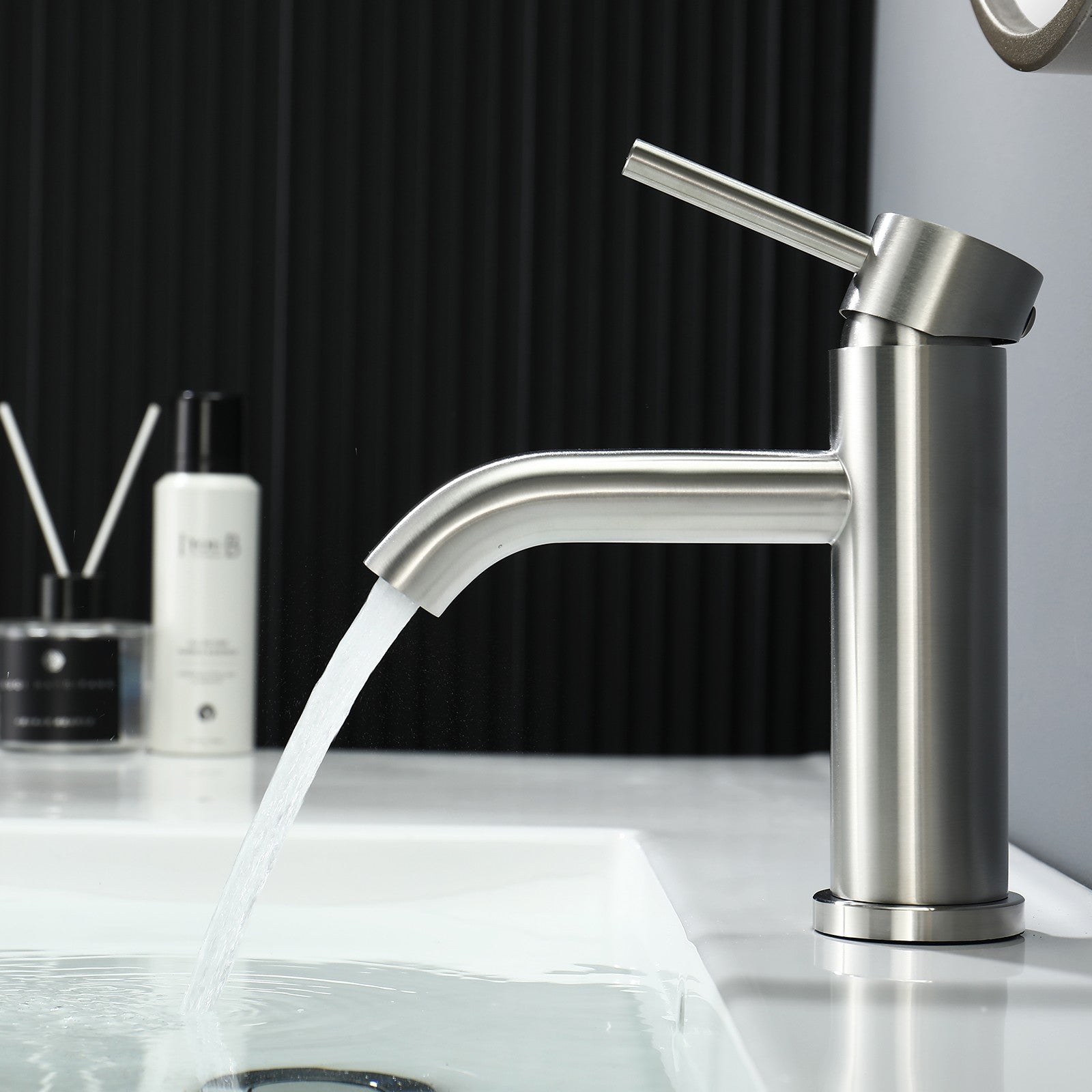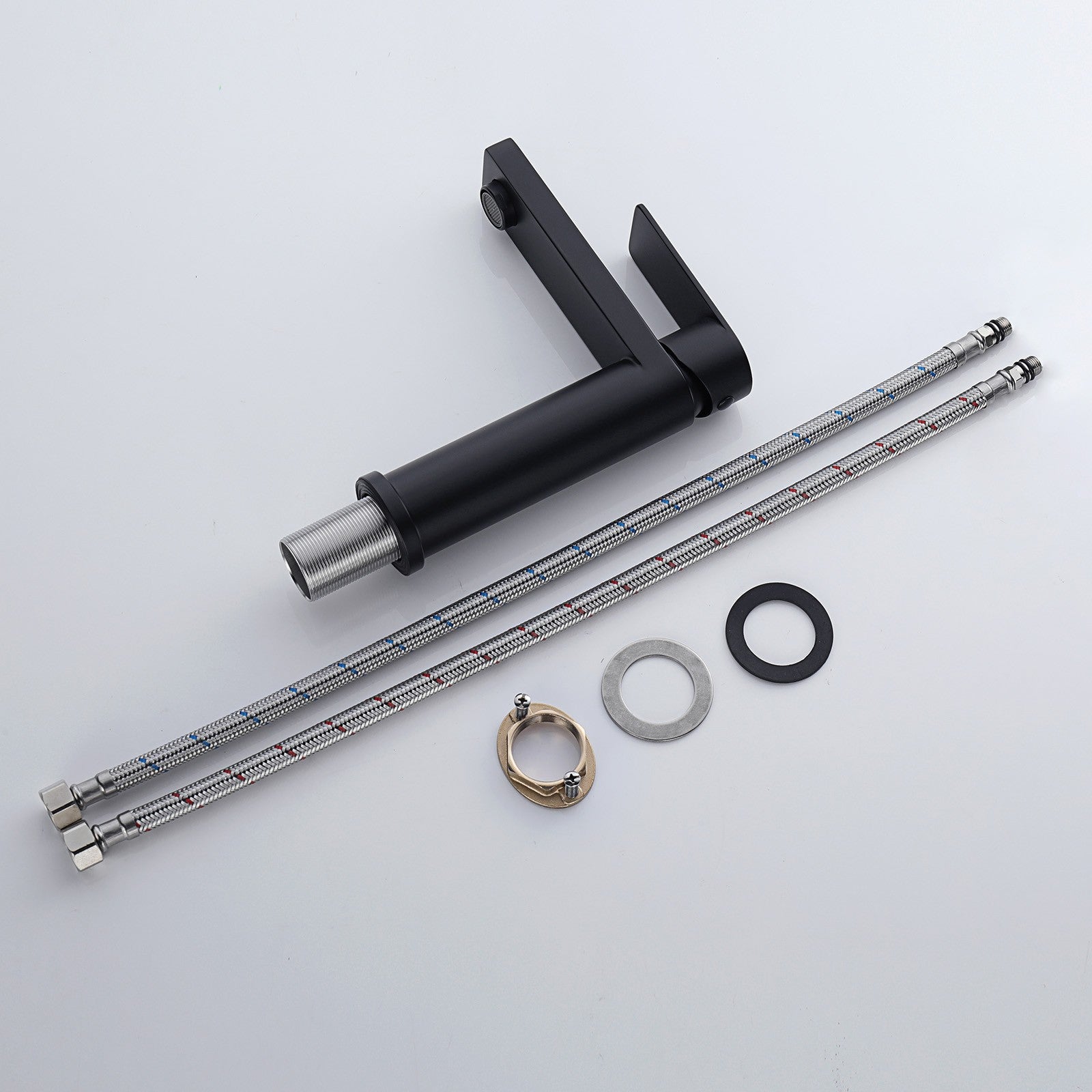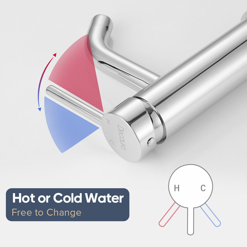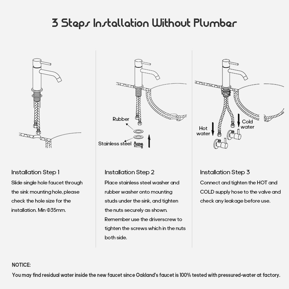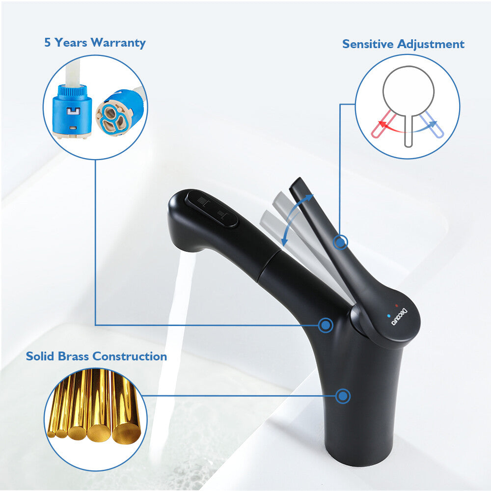 Item Type: with pull out spray in chrome/matte black Main features: (2) 2 Mode Spray: Stream mode non- splashing and water-saving. Jet mode reach use for washing hair, basin corner or bathing pets. (3) Health and durable: Lead-free brass construction, 500,000 life time completed ceramic spool provides sensitive control water and temperature. Odorless by using PEX inner hose. (4) Easy to Install: An installation video help you to fix by yourself smoothly. This bathroom sink tap is suitable for mounting hole diameter of 32-45mm, 60cm long hoses make connection easier. (5) Quality Assurance: 100% test before packing, Decaura's tailor-made sponge packaging well protect the tap during the transportation. 24/7 customer service, so you have no worries. Package contents |