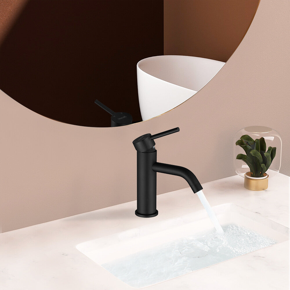 Decaura Bathroom Basin Sink Mixer Tap Matte Black Brass Faucet Round Gooseneck