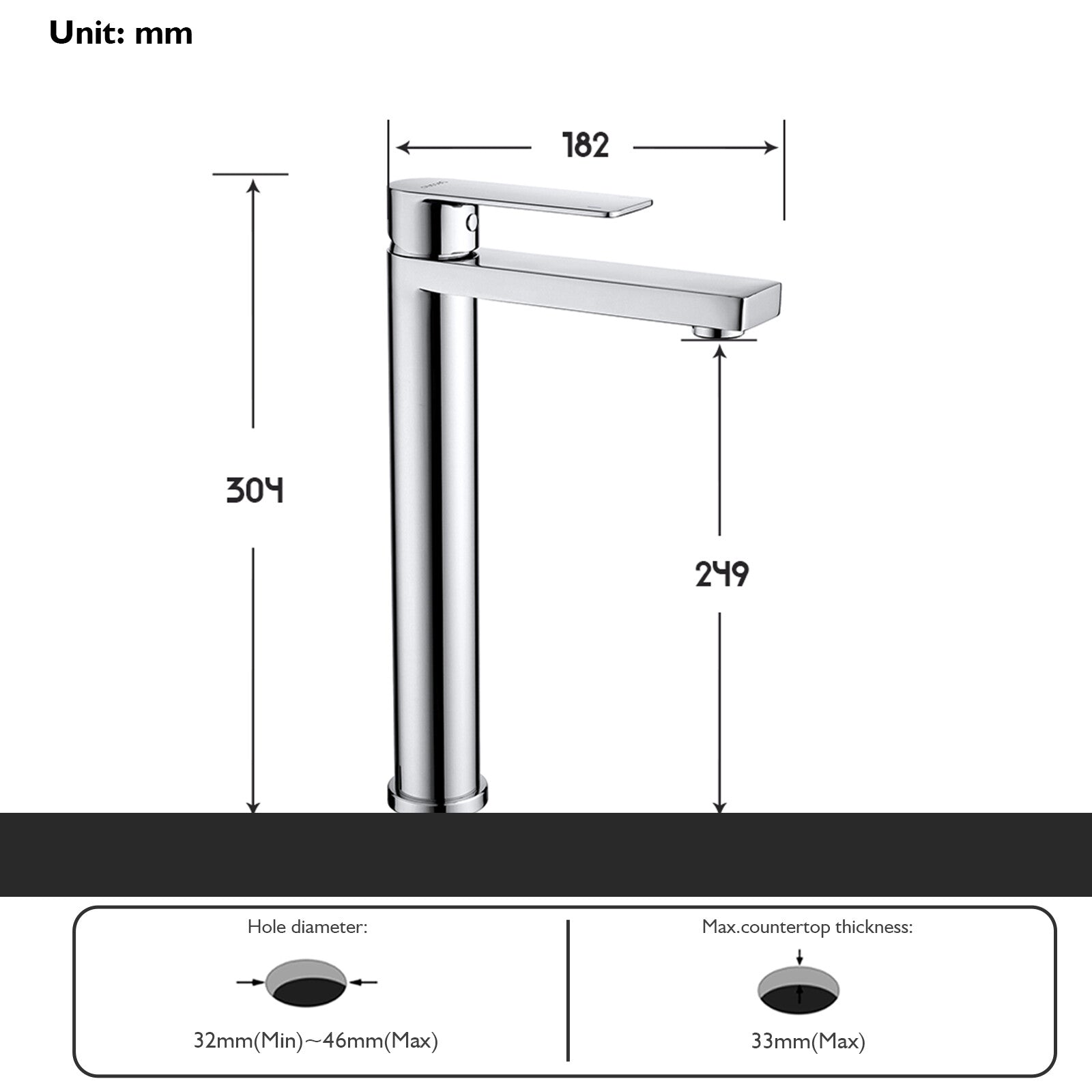 Faucet hole Installation diameter: 3.2cm-4.6cm