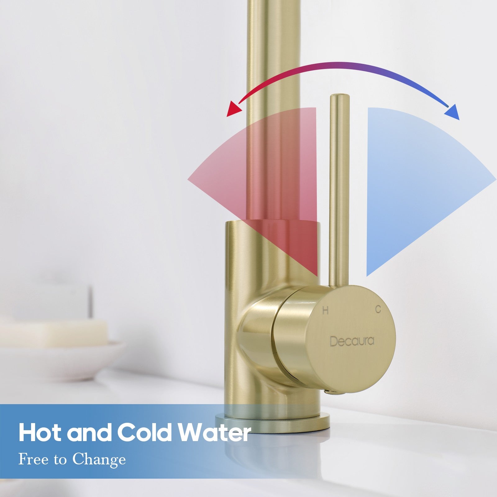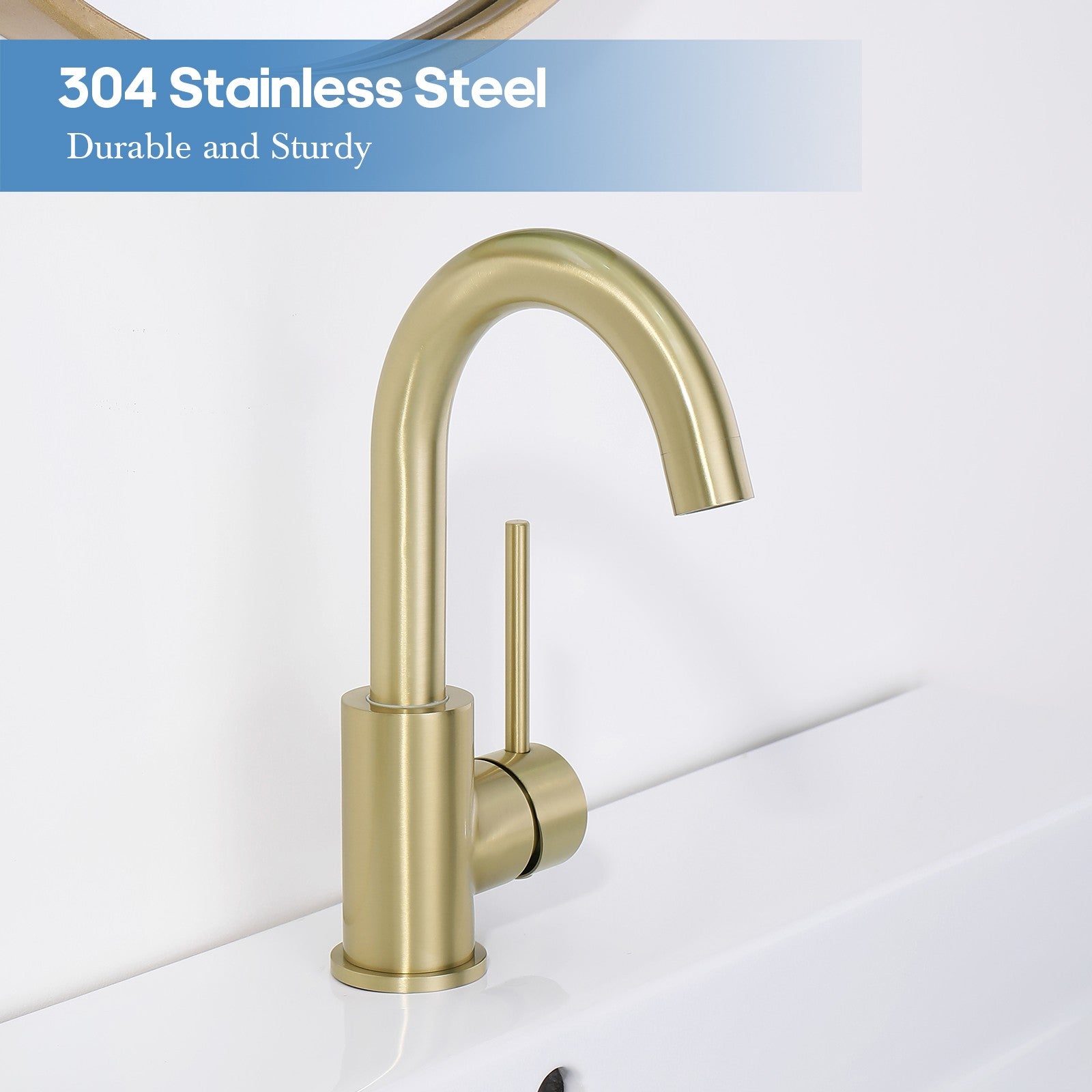 Decaura Brushed Gold Bathroom Basin Mixer Tap Round Swivel Arm Vanity Faucet
