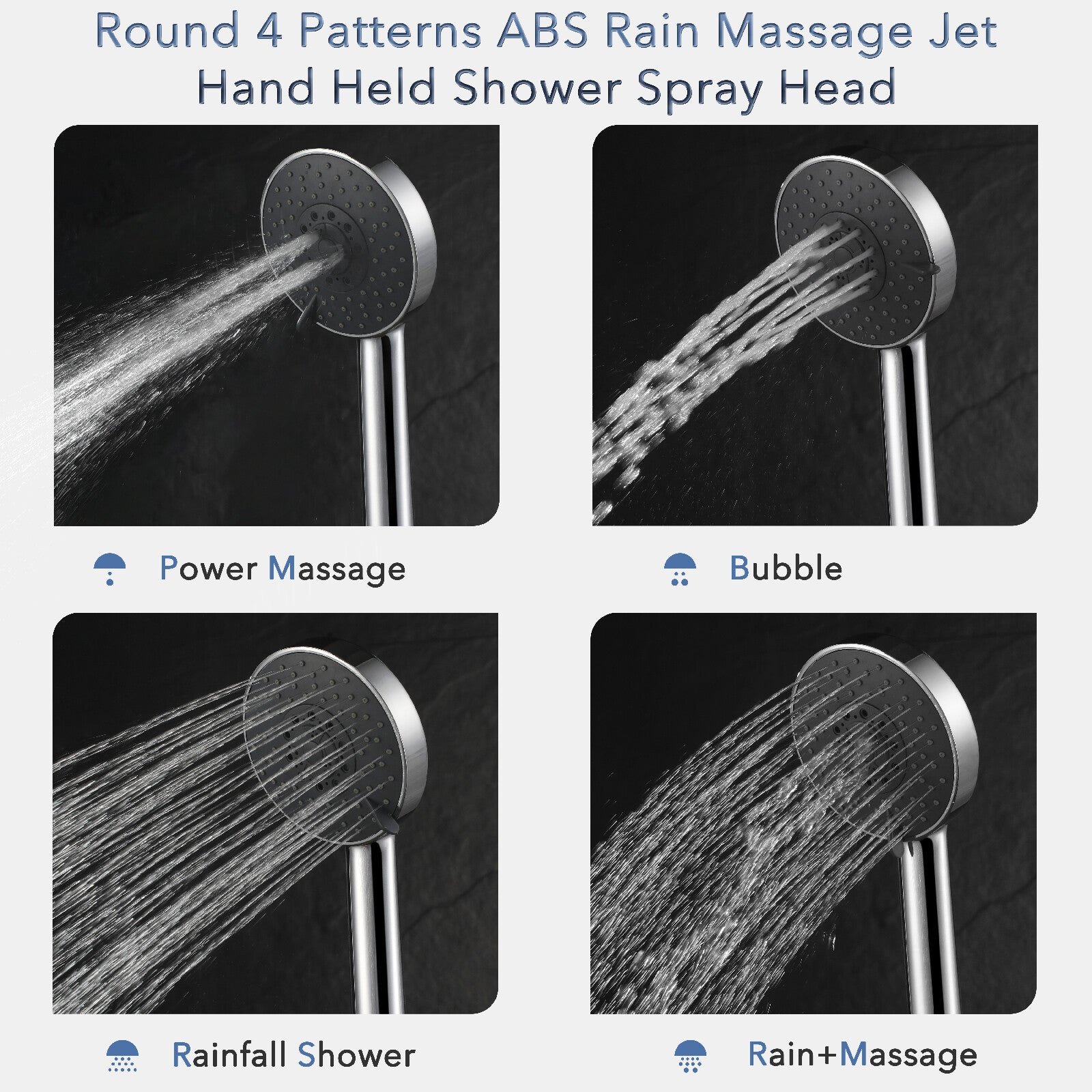 Adjustable Angle, High Pressure, Massage Jets, Rainfall, Kink-free Hose, Pause Function