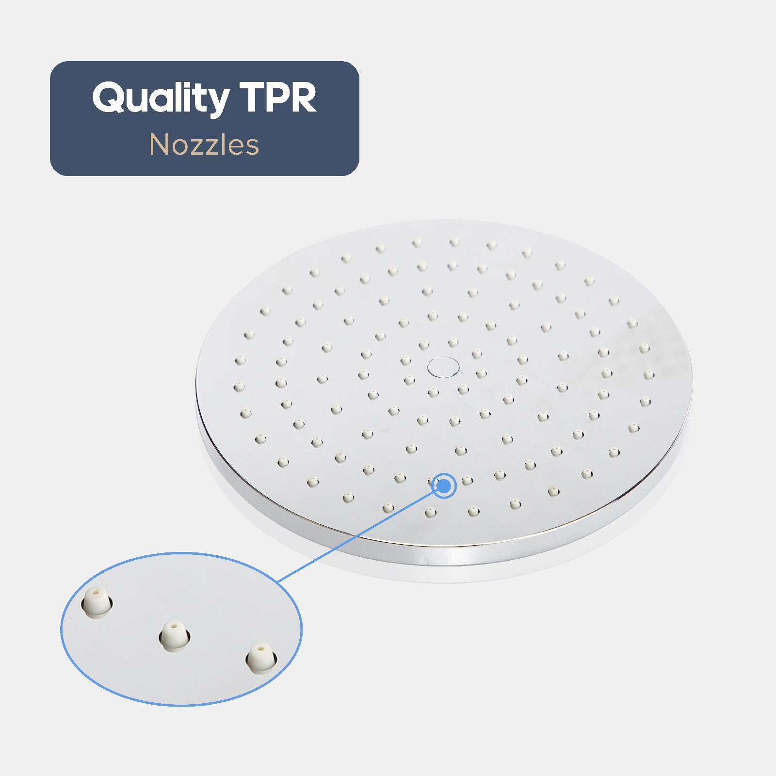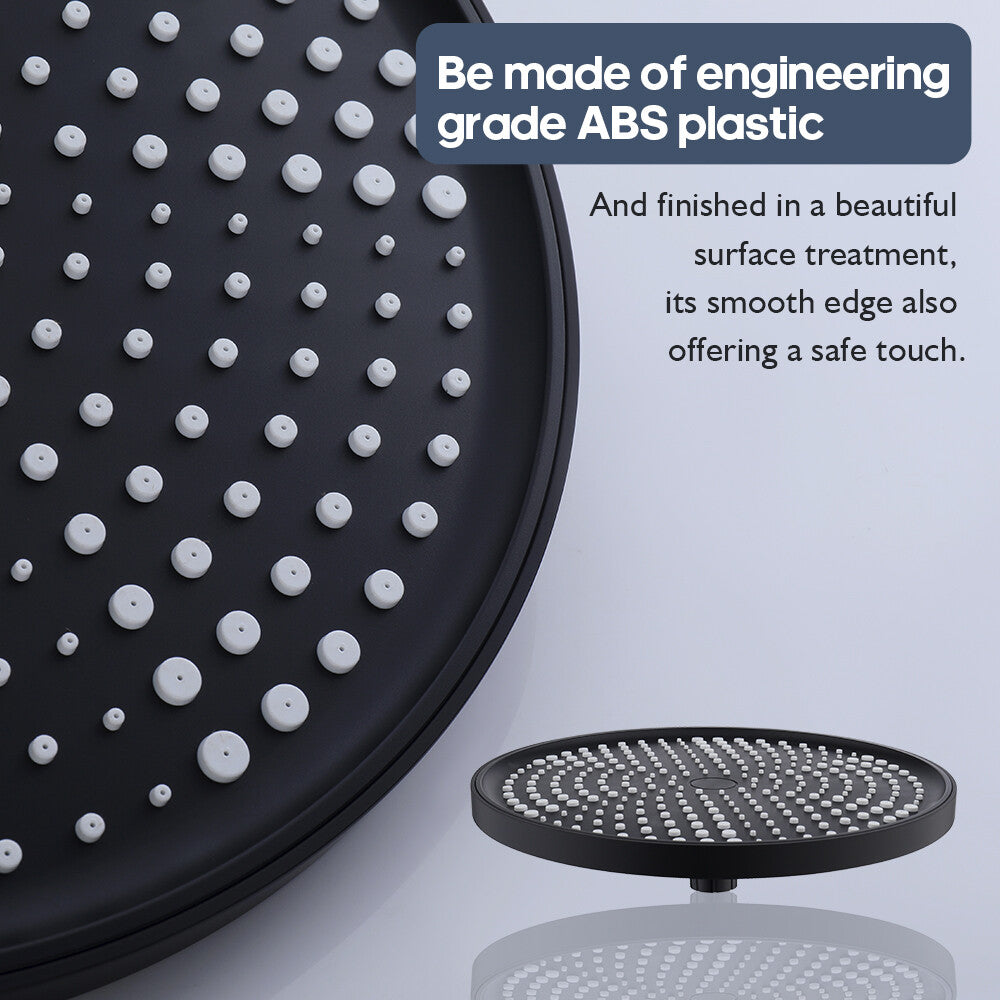 22cm-round shower head-plastic in chrome or black: (1) The 9-inch wide panel contains 104 precision-designed high-pressure nozzles, bringing you a soothing shower experience. (2) The ball joint can be adjusted easily and flexibly, allowing you to experience a pleasant showering process from all angles. WELS Info with this Item: WELS star rating: 3 flow rate in litres per minute: 9.0 litres per minute WELS registration number: S16547 Comply with Australian Standard 6400:2016 |