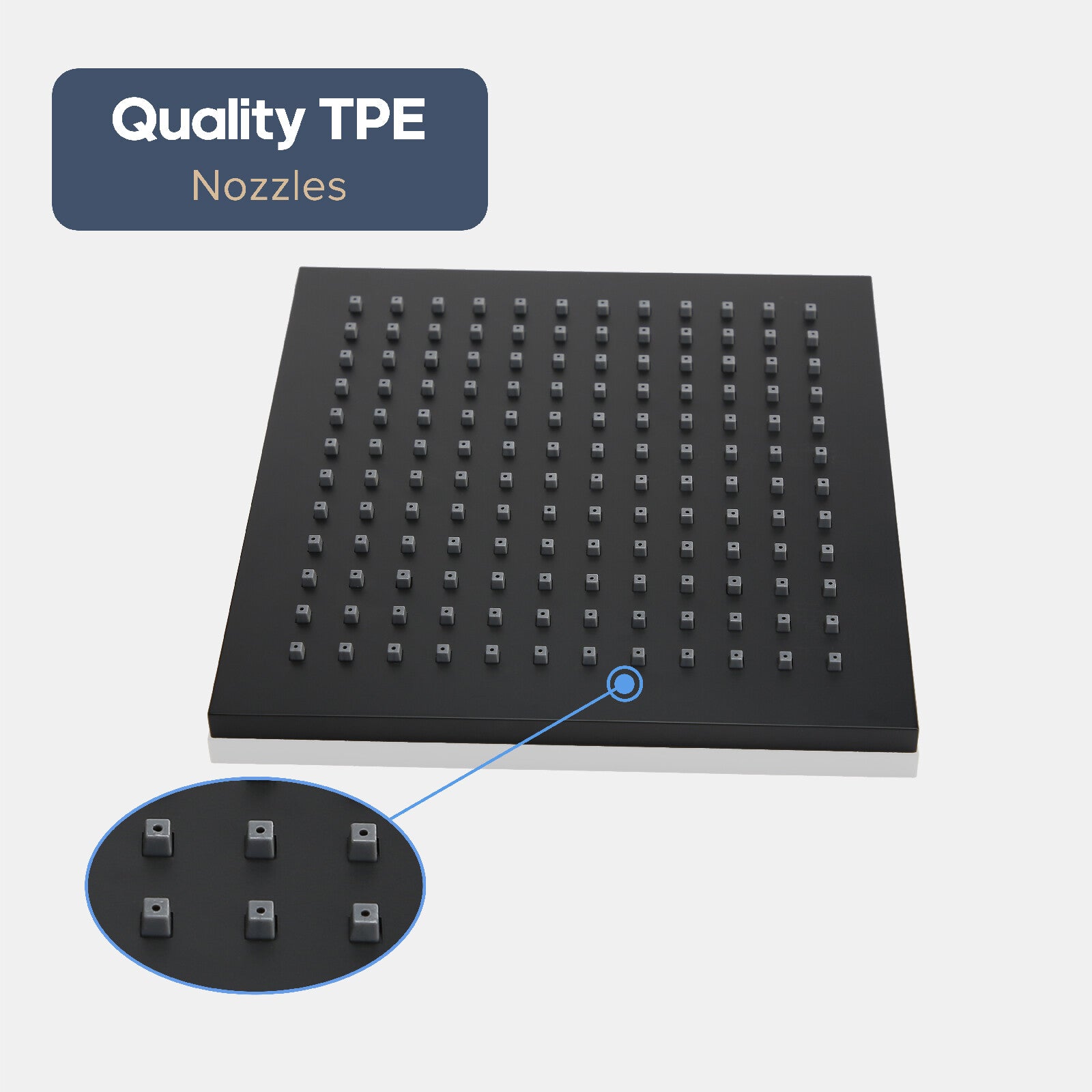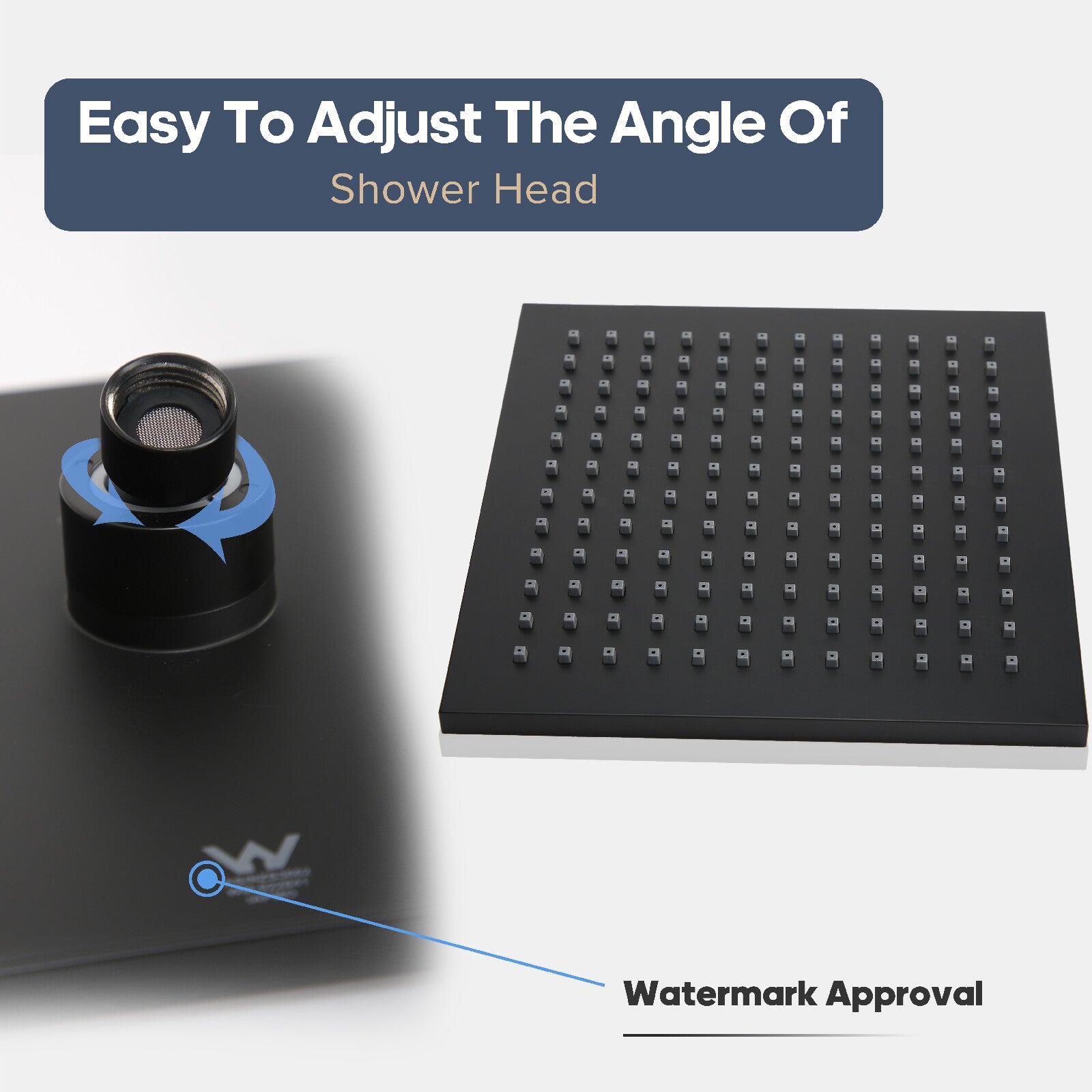 square shower head-black/chrome-plastic 20cm WELS Info for 20cm rain shower head: Package Contents: |