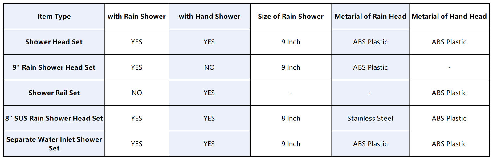 Shower Head Set: Rain Shower Head: Hand Held Shower Head: Shower Hose: Gooseneck Shower Arm: Package Content: |