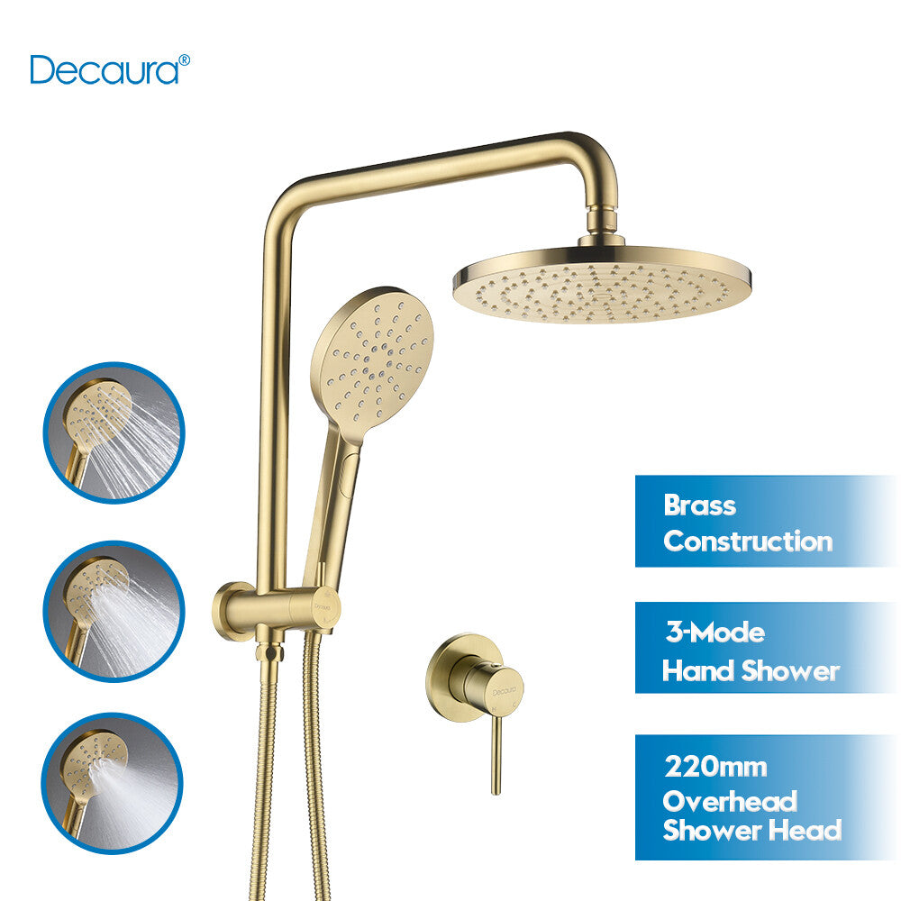 Watermark certified and stamp WELS star rating: 3 flow rate in litres per minute: 9.0 litres per minute WELS registration number: S16439 Comply with Australian Standard 6400:2016 Rain Shower Head Info: 8" (200mm) stainless steel Rain Shower Head Easy cleaning rubber jets with improved hydrodynamic resistance 360° swivel ball joint adjustable in all directions Mesh filter inside the shower head,blocks all debris in water Handheld shower head Info: 3 functions(Rainfall/Bubble/Mix) ABS plastic handheld shower come with 1.5 meter 304 stainless steel spiral wound metal water hose Easy cleaning rubber jets with improved hydrodynamic resistance Shower Rail Info: Solid brass built-in diverter with swivel holder : easy to switch between top shower head & handheld spray Solid brass shower rail Top ingrated wall water inlet with G 1/2" female end Package Content: 1 x 8'' Round Rainfall Shower Head 1 x Handheld Shower Spray With 1.5m Water Hose 1 x Gooseneck Shower Arm Rail 1 x Diverter With Water Inlet 1 x Adjustable shower bracket |