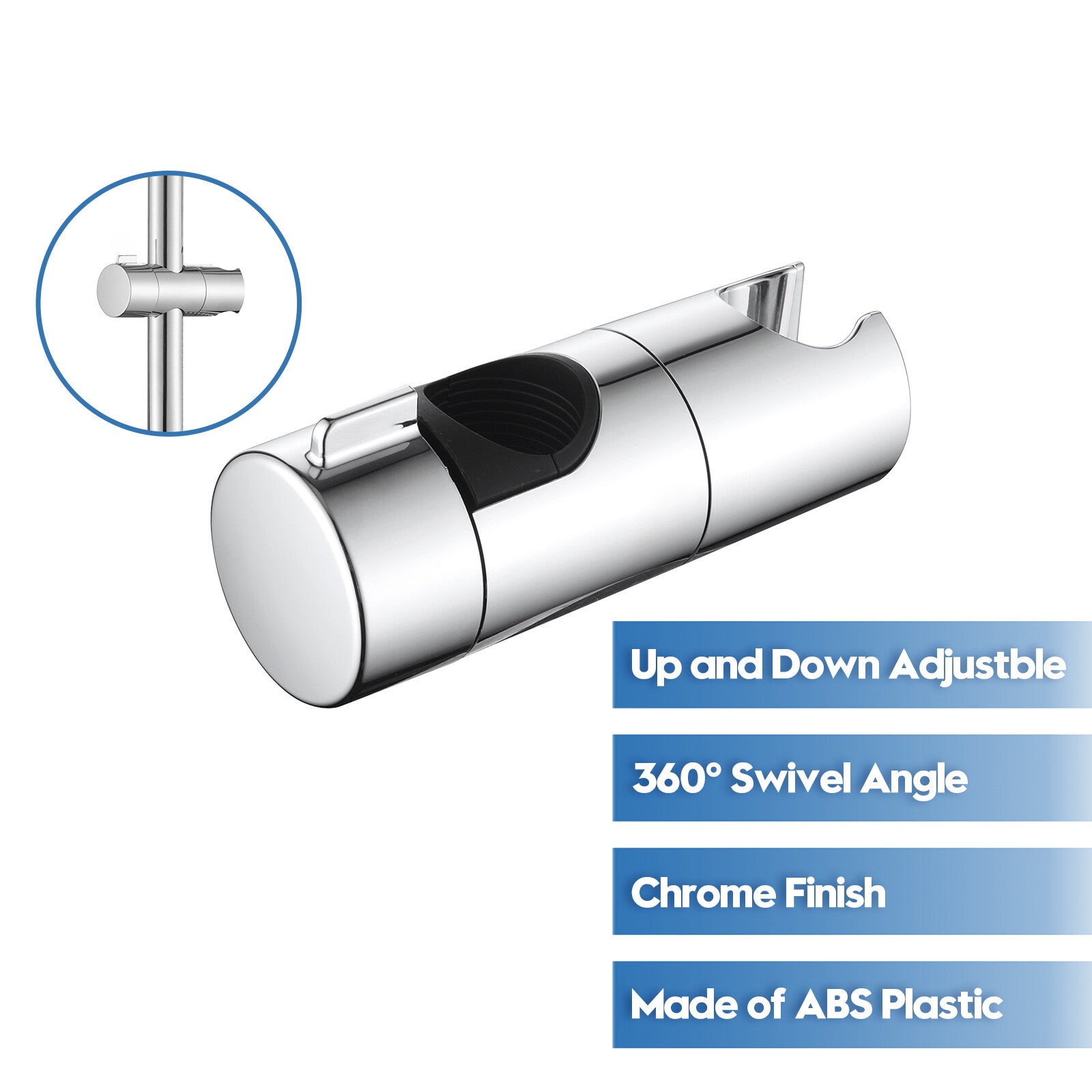 Decaura Shower Riser Rail Head Holder Hose Slider Replacement Adjustable Chrome